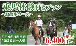 1泊2食付きのご宿泊と乗馬体験がセットになったお得なプランです。