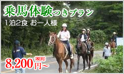 1泊2食付きのご宿泊と乗馬体験がセットになったお得なプランです。